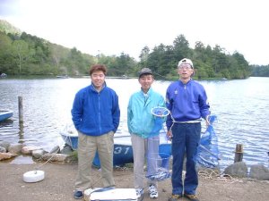 友人(同級生)3人と湯乃湖に釣りに行きました、7時前に着きボート2艘借り