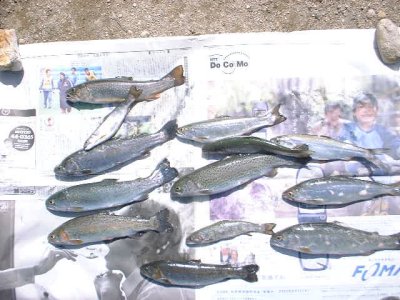 西へ移動して、ヒメマス1匹、カワマス(ブルックトラウト)5匹、ニジマス6匹、を釣り2時過ぎに