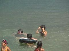 海で泳ぐ私と妹、友達になった陽加ちゃんとけん太君